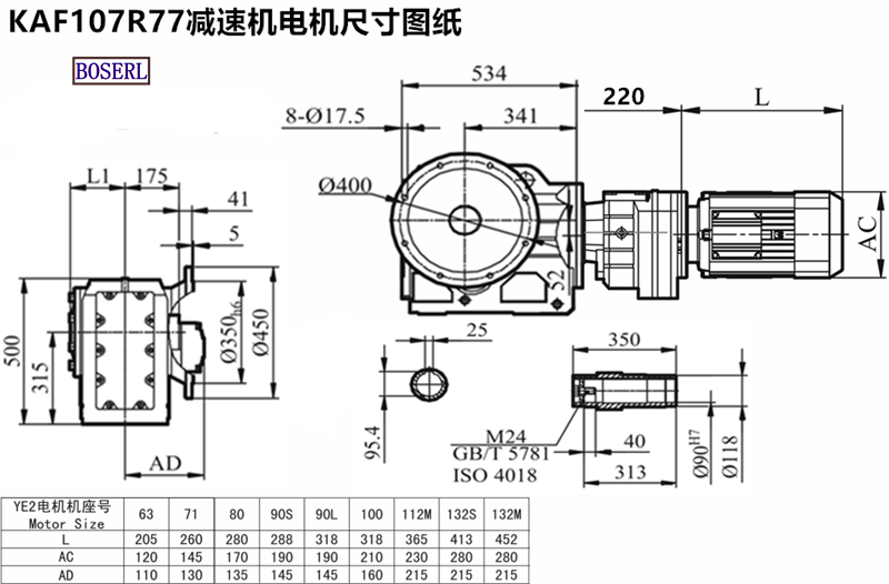 | KAF107RF77減速機型號 | KAF107R77Y63M4 | KAF107R77DRS132M4 | KAF107RF77Y4KW |